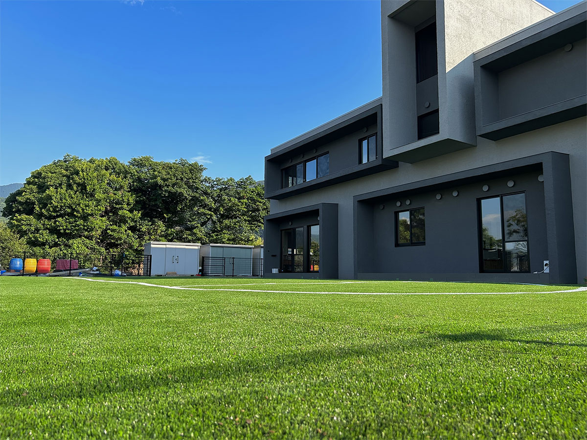 オフィスや社屋の外構に人工芝を導入し、社員や来客がくつろげる空間を提供。管理が簡単で、企業のイメージ向上にも繋がります。