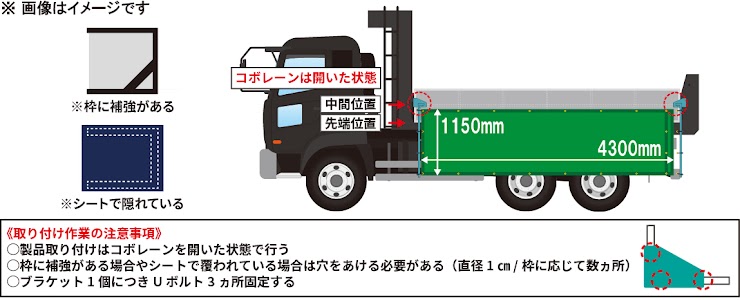 全国各地の車両によってコボレーン(あおり)の仕様が異なります。