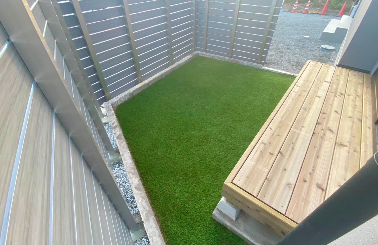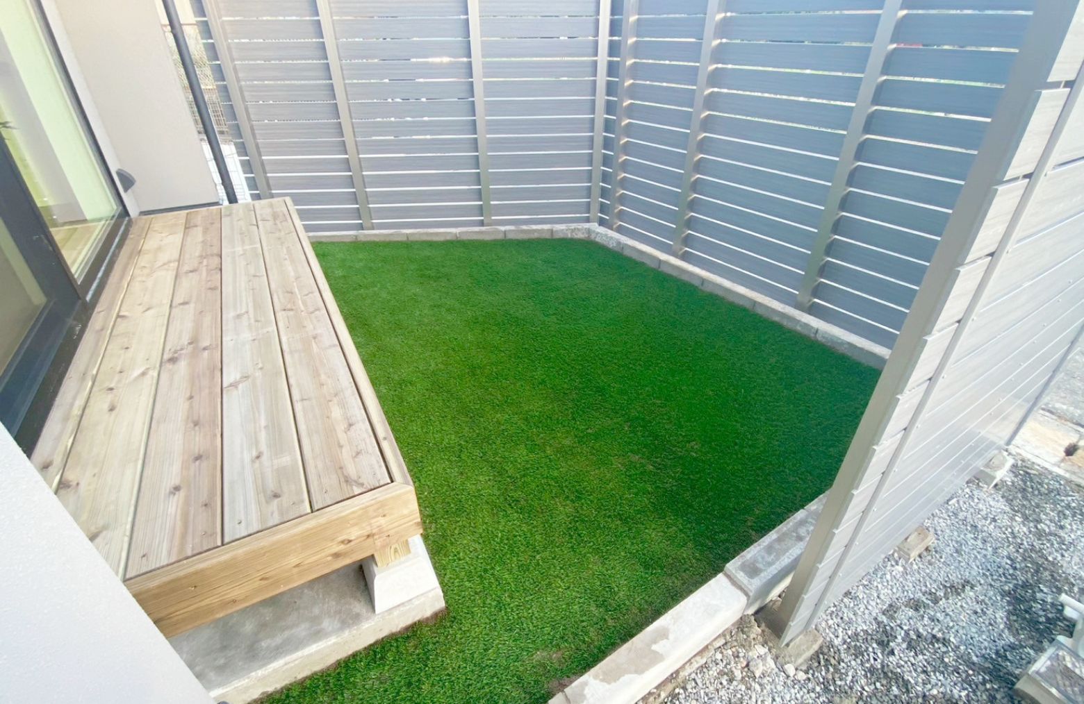 人工芝の施工により、庭まわりの印象が整い、物件全体の魅力向上につながりました。見た目と使いやすさを両立し、内覧時にも印象に残る空間となっています。